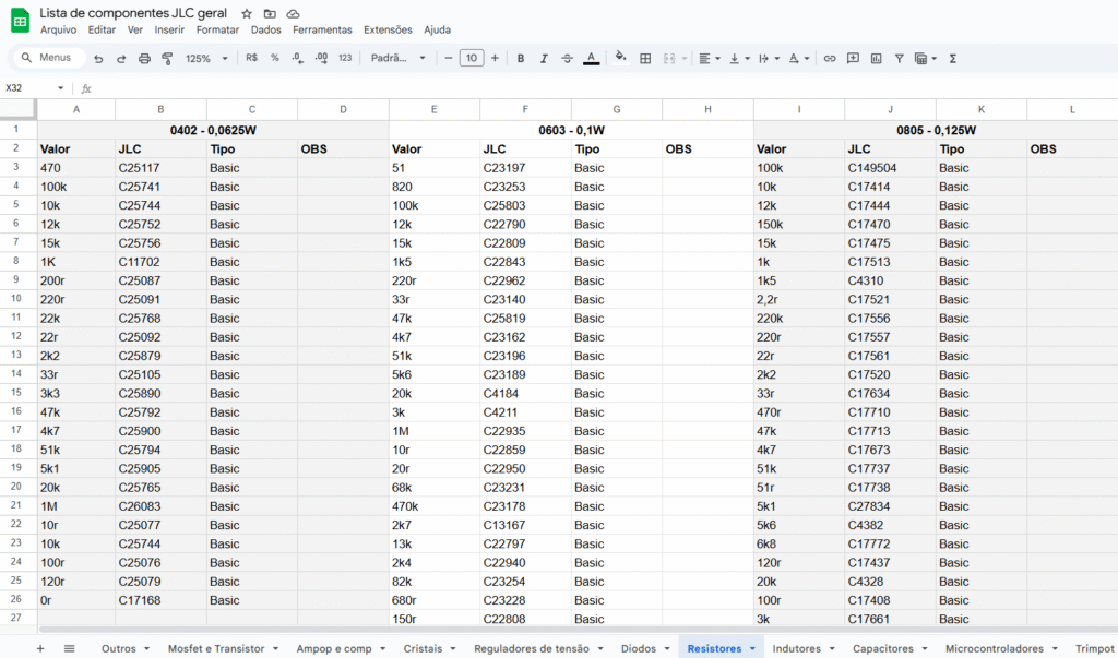 Ganhe acesso à minha planilha atualizada com os códigos da JLCPCB dos componentes que mais uso. Pare de perder tempo procurando componentes e acelere a fabricação dos seus projetos com a curadoria que eu fiz.
